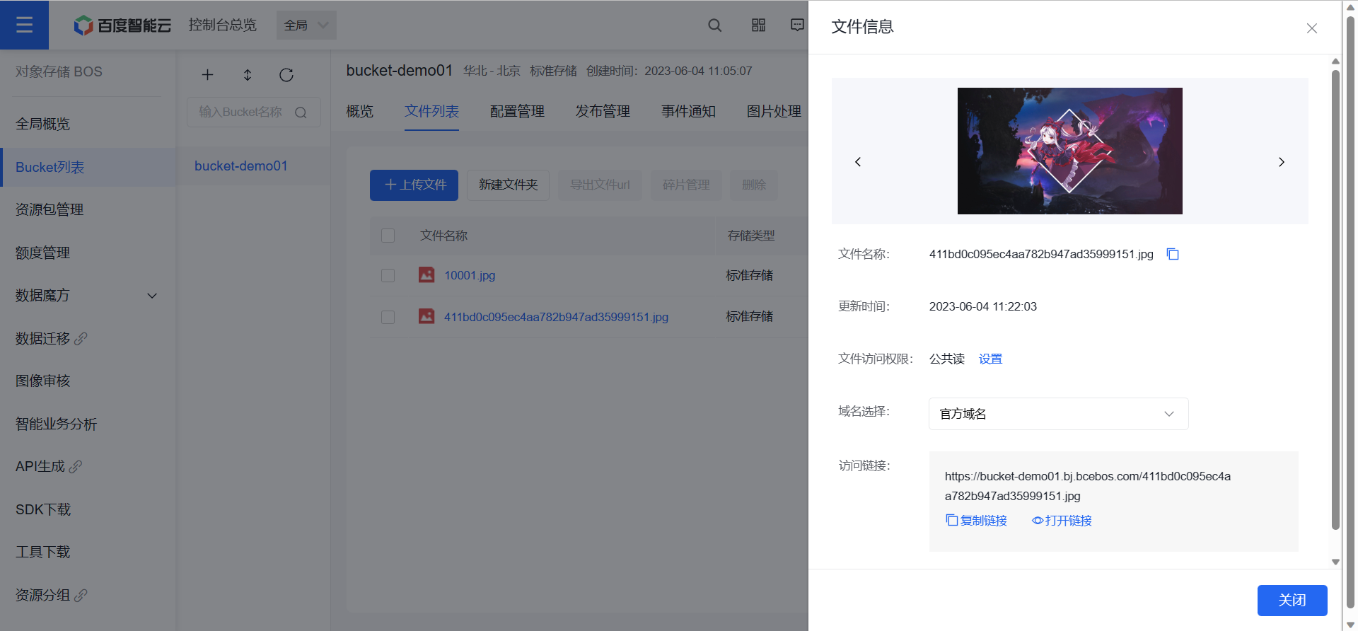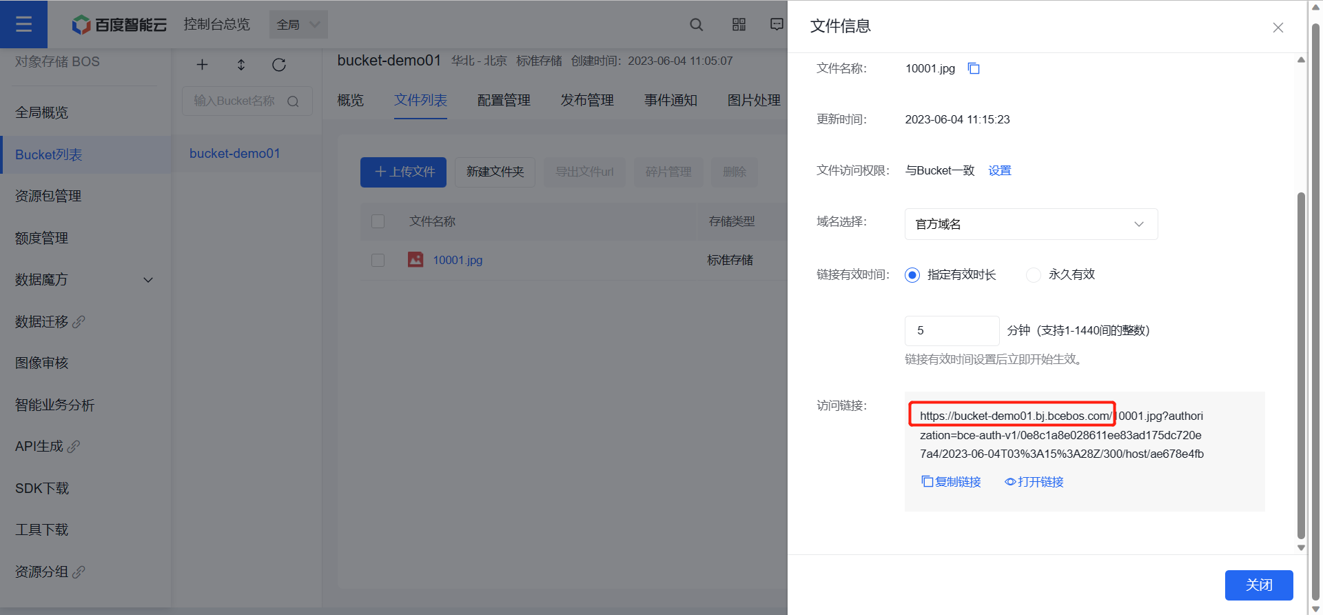 比如这里是 https://bucket-demo01.bj.bcebos.com/