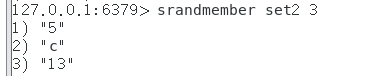 srandmember set2 3 : 随机展示set2中的3个元素,不会删除元素