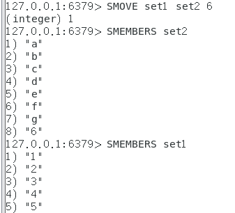sismember set1 1 :判断1是否为set1中的元素,是则返回1,否则为0