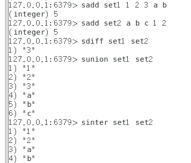 sinter set1 set2 : 返回 set1 和 set2 的交集
