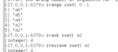 zrevrank zset1 n2: 返回zset1中n1的倒序索引