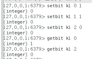 **setbit k1 0 1 **: 给位图k1中下标为0处的值设为1