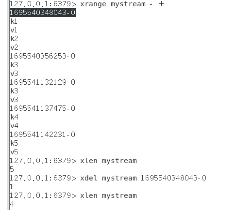 xdle mystream 1695540348043-0 :删除id为1695540348043-0的消息