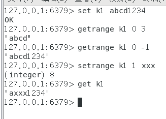 getrange k1 start end : 取k1中索引为start和end范围内的值