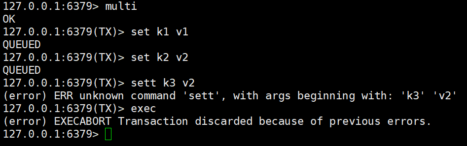 比如下图中,命令写错,sett k3 v3 多写了一个t,或者是其他语法上的错误,这种就属于编译型异常