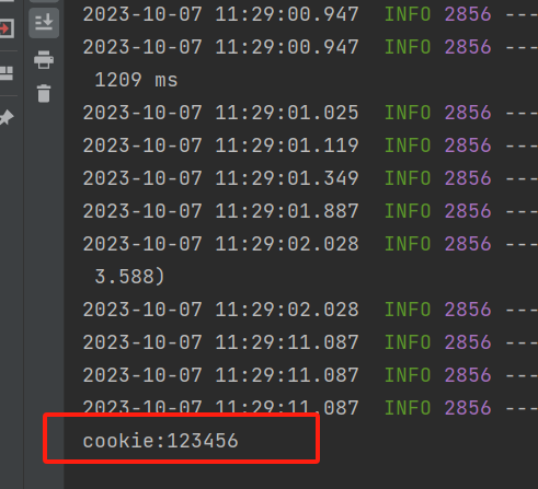 1 2 3 4 5 6 7 8 9 10 11 12 13 14 15 16 17 18 19 20 21 @RestController public class TestController { @GetMapping("/cookie1") public Result cookie1 (HttpServletResponse response) { response.addCookie(new Cookie ("login_userid" ,"123456" )); return Result.success(); } @GetMapping("/cookie2") public Result cookie2 (HttpServletRequest request) { Cookie[] cookies = request.getCookies(); for (Cookie cookie : cookies) { System.out.println("cookie:" +cookie.getValue()); } return Result.success(); } }