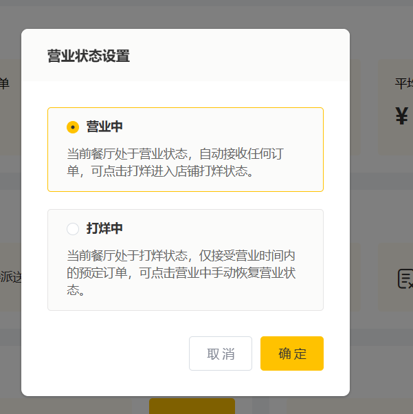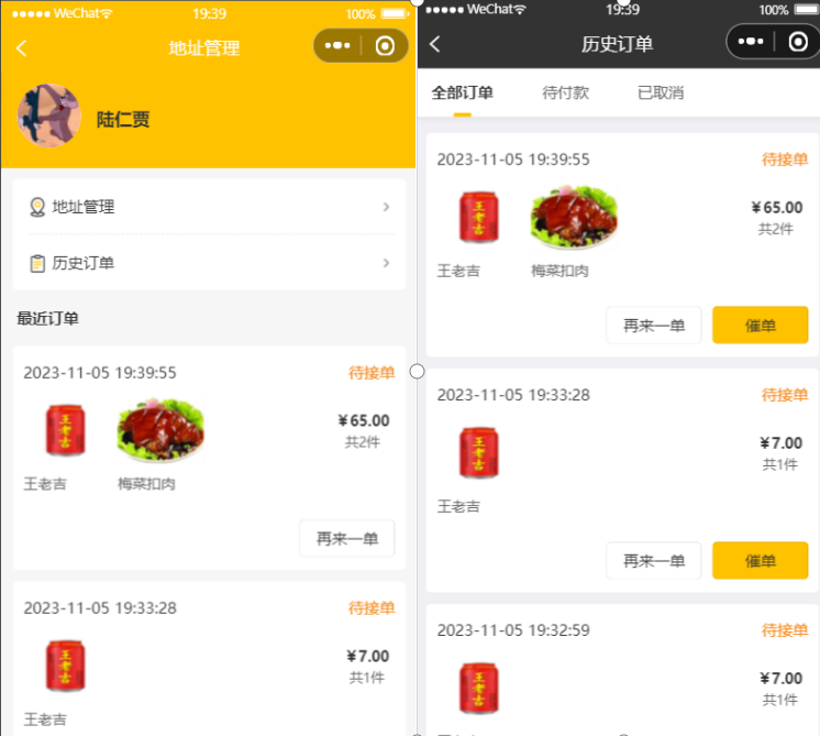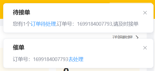 | 来单提醒 | 实时与用户端保持连接,当用户下单或者催单时,管理端发出提示 |
