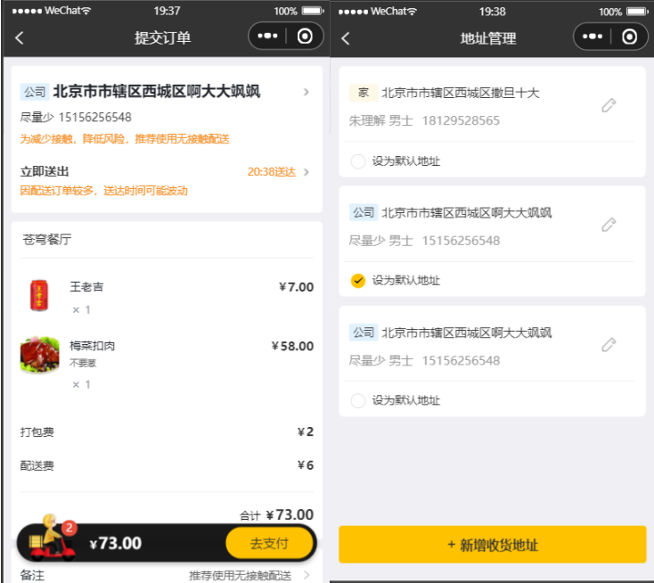 | 地址管理 | 主要维护用户保存的地址,包含查询、新增、删除、修改、设为默认 |
