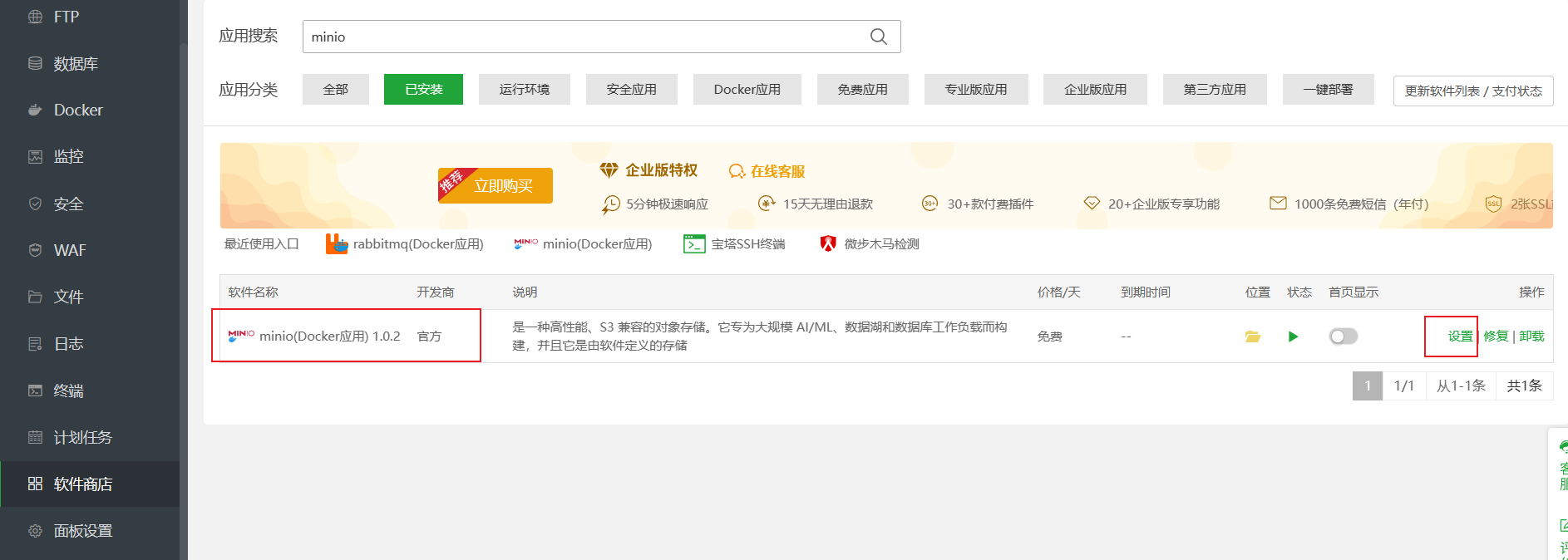 这里直接在宝塔面板安装,十分快捷方便,安装后也可以在面板中直接管理