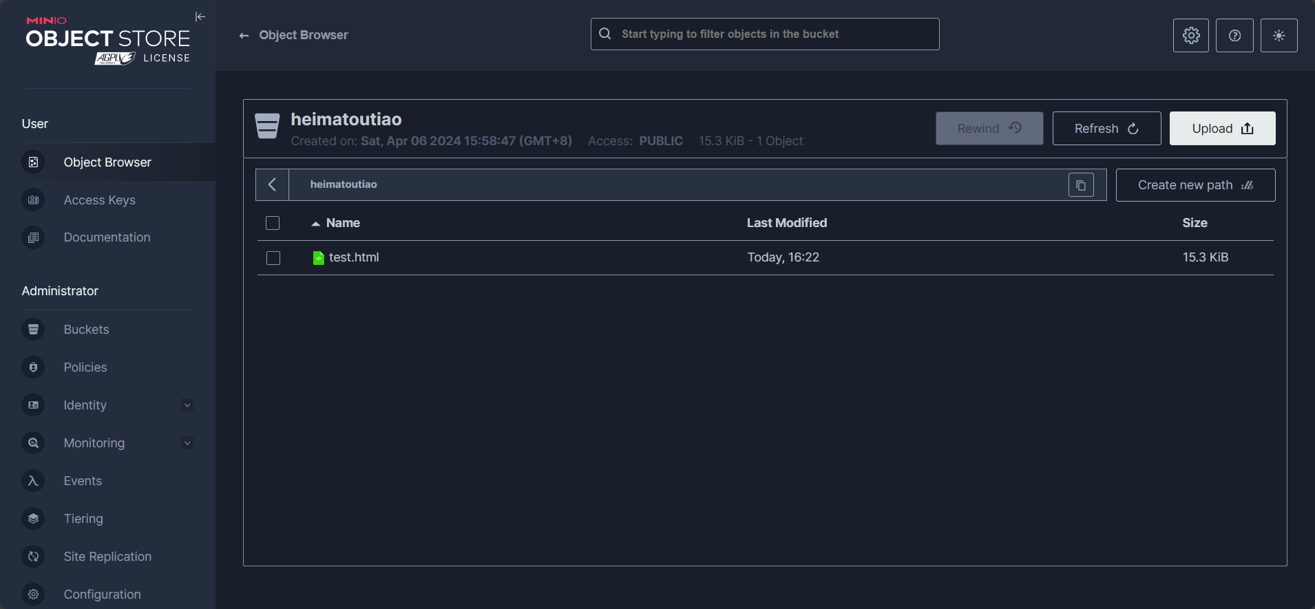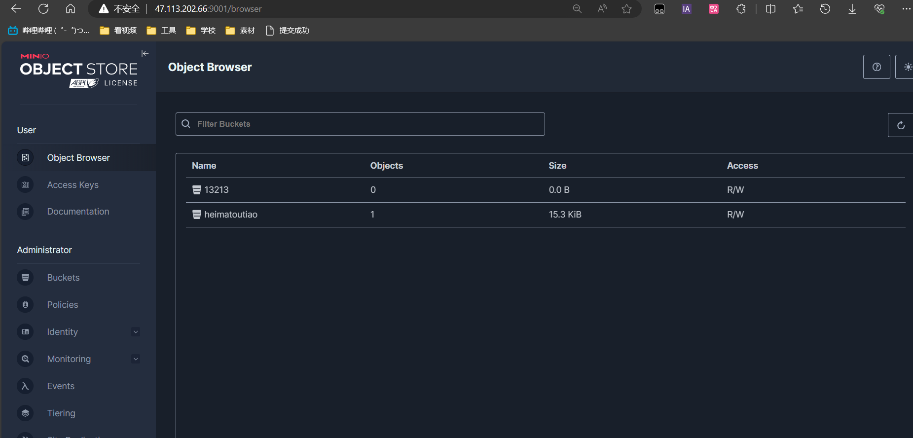在minio管理页面中可以看到成功导入了,点击链接也可以直接访问