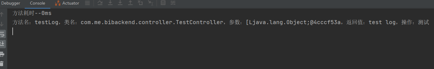 @GetMapping("/log") @LogAnnotation(operation = "测试") public String testLog() { return "test log"; } }